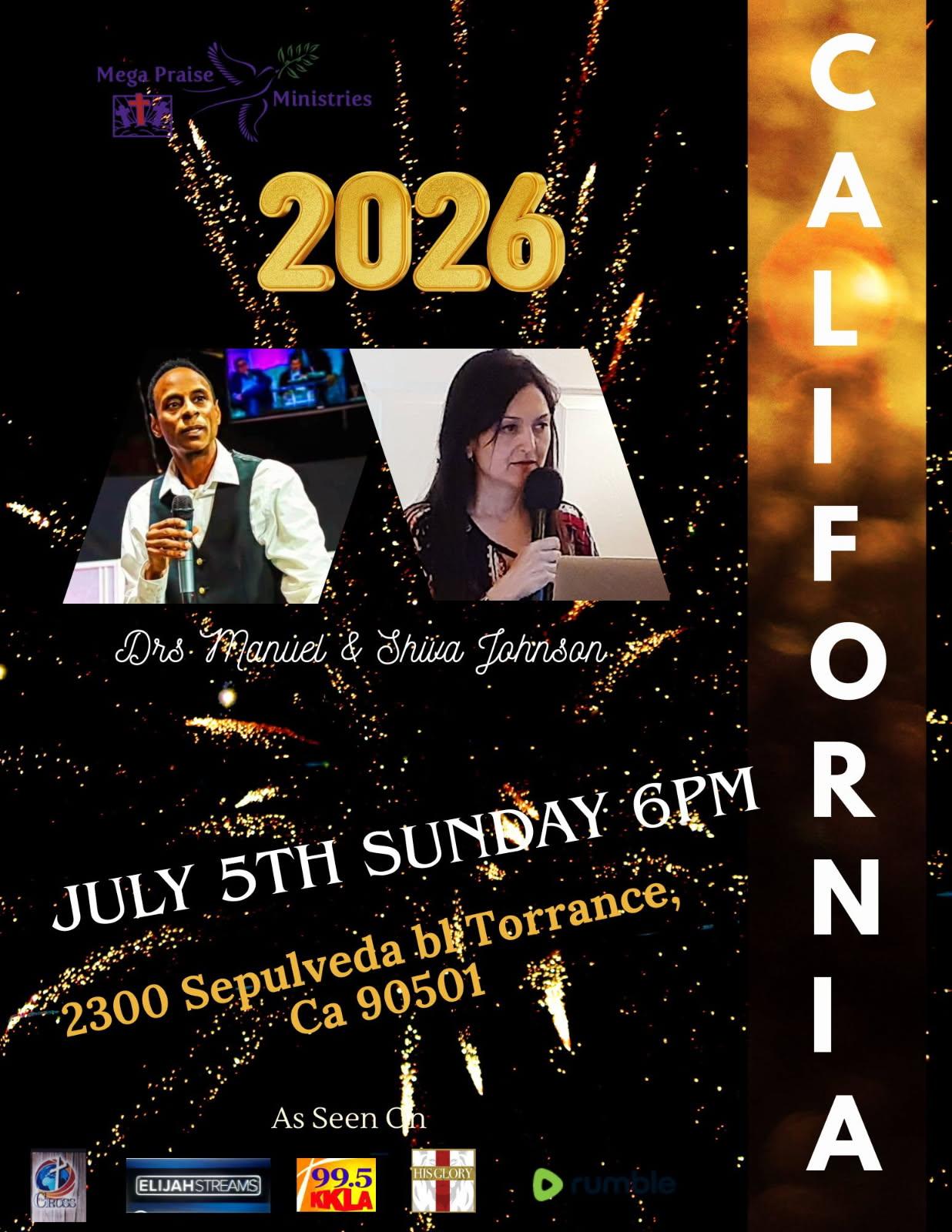 Torrance New Life Church 2300 Sepulveda Blvd, Torrance, CA, United StatesPastors Manuel & Shiva Johnson & the Mega Praise Ministries Staff Invite you to our next uplifting & anointed service on Date: Sunday, July 5, 2026 Time: 6:00 p.m. Location: […]
