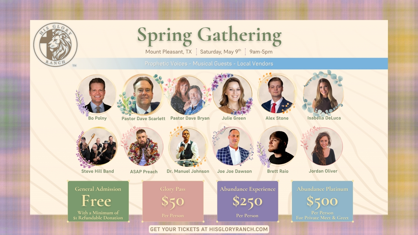 https://maps.app.goo.gl/5CqxUHaApYoP7gb96 1222 County Road 4640, Mt.Pleasant,, Texas, United StatesPastor Manuel Johnson ministering at His Glory Ministries - Spring Gathering Location: His Glory Ranch 1222 County Road 4640 Mt.Pleasant, Texas 75455 Date: May 9, 2026 Time: 9:00 a.m.- 5:00 […]
